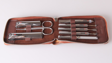 配件:大平口指甲鉗、美容剪、小平口指甲鉗、眉夾、指甲銼、刮刀、竹殼推整器、耳挖